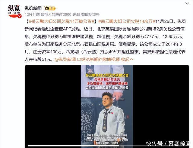 如今岳云鹏夫妇的“夫妻店”重蹈覆辙,同样是明星持股、家人打理,同样是财税问题出纰漏。 再多的钱也买不来口碑。岳云鹏的逆袭神话曾激励无数人,可如今却在争议中渐行渐远。 欠税事件虽不是偷税漏税,但也暴露了管理漏洞和责任缺失。